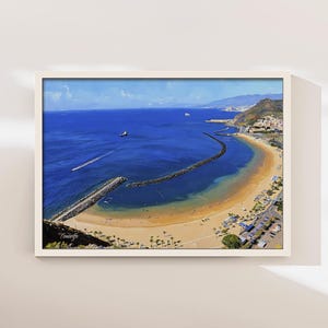 Printed on premium 100% cotton canvas, this artwork brings the atmosphere of Tenerife’s volcanic landscapes into your home or office. The contrast between the glowing sky, the dark silhouette of the volcano and the soft clouds below creates a striking wall decoration inspired by the landscapes of the Canary Islands.