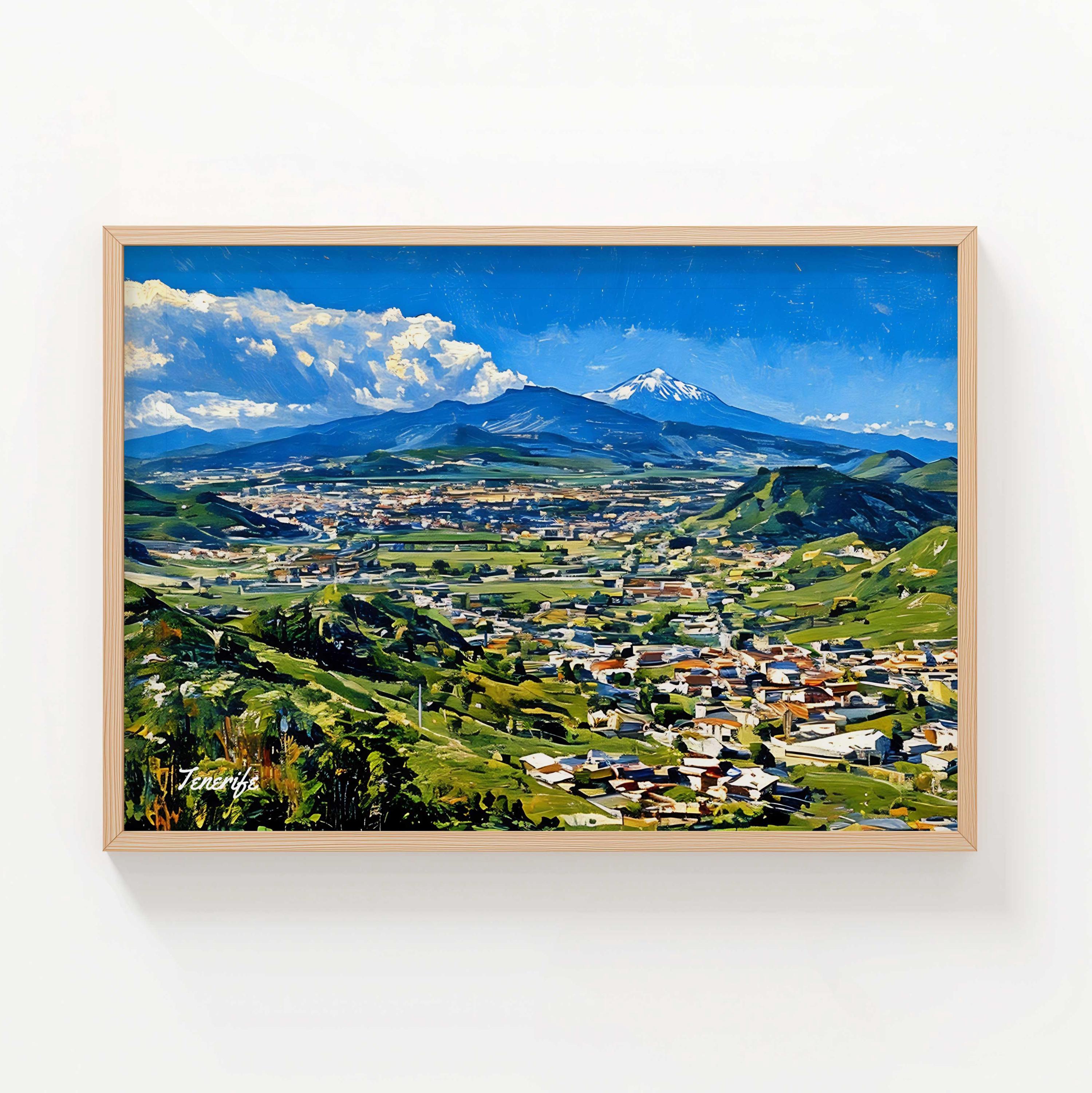 Printed on premium 100% cotton canvas, this artwork brings the expansive scenery of Tenerife into your home or office. The combination of vibrant greenery, rural landscapes and the iconic volcano creates a distinctive wall decoration inspired by the natural beauty of the Canary Islands.
