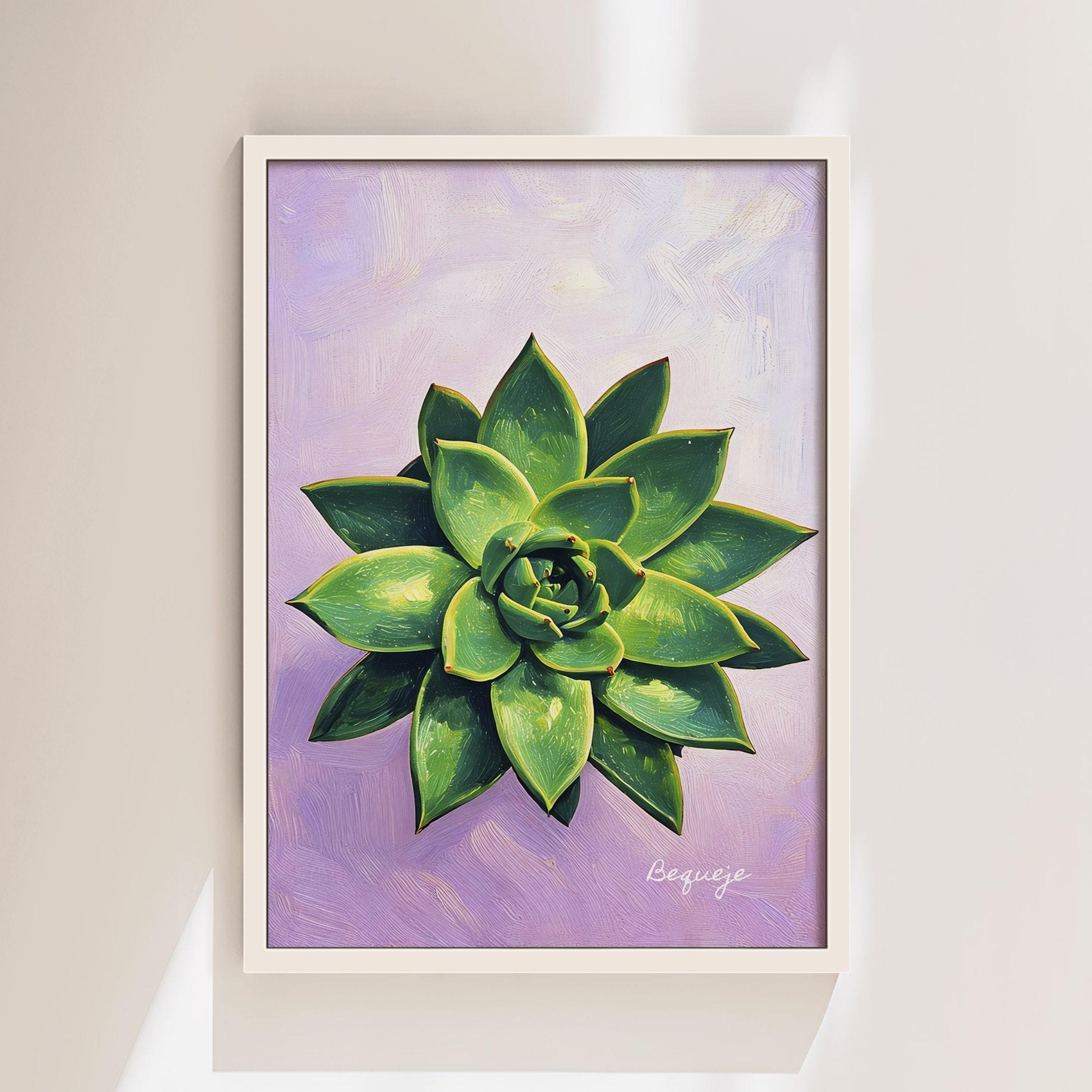 This artwork features the elegant geometric form of the Bejeque, a succulent plant native to the Canary Islands. Its symmetrical rosette of thick green leaves creates a natural pattern that highlights the plant’s distinctive structure and botanical beauty.