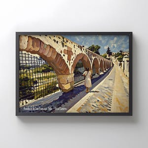 This artwork captures the iconic Faro de Maspalomas, one of the most recognizable landmarks of Gran Canaria, standing proudly at the southern tip of the island where the Atlantic Ocean meets the famous Maspalomas dunes.