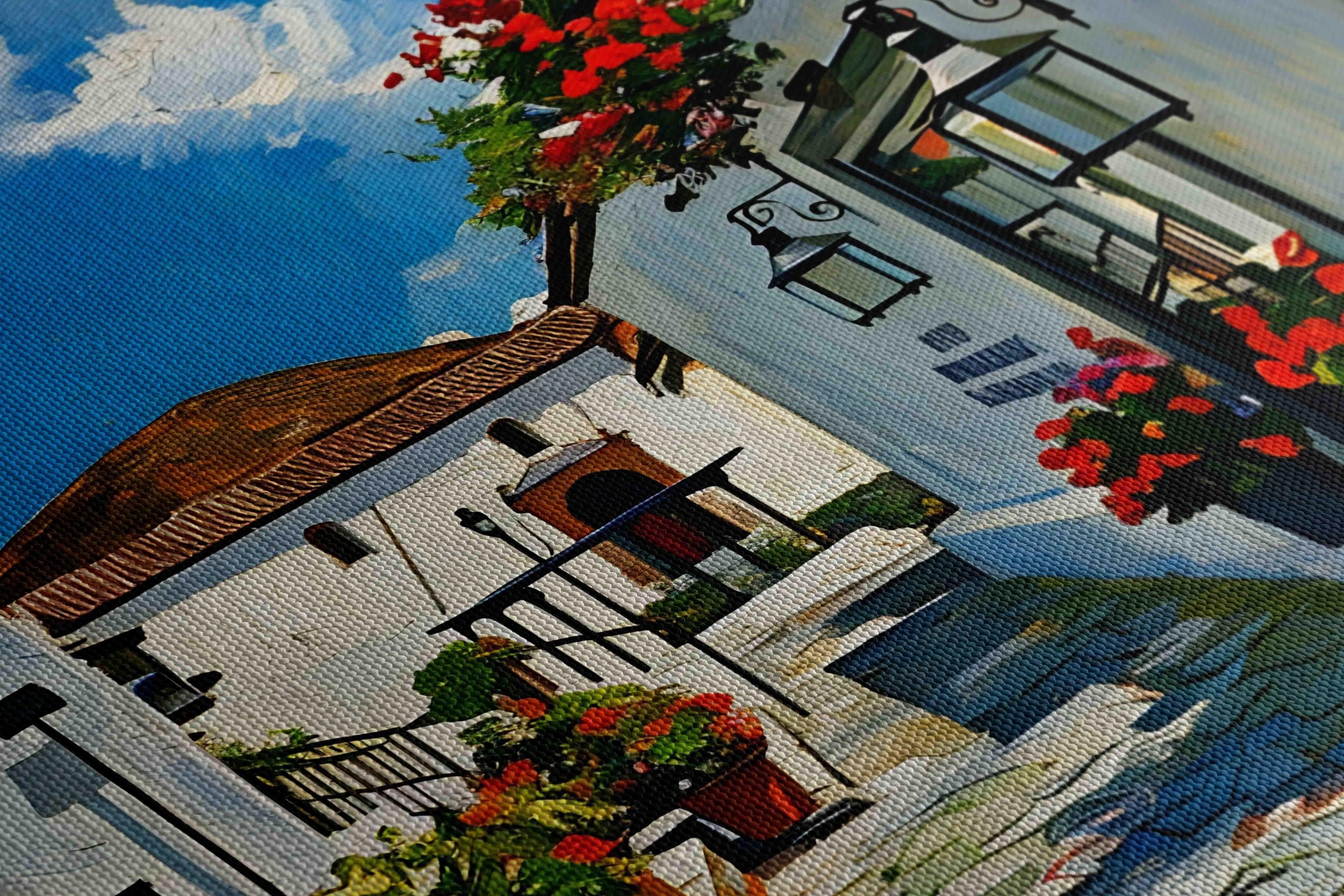 The composition brings warmth and light into any space, making it a natural fit for living rooms, bedrooms, or relaxed work environments. Its balance of color and simplicity connects easily with Mediterranean and coastal interiors.