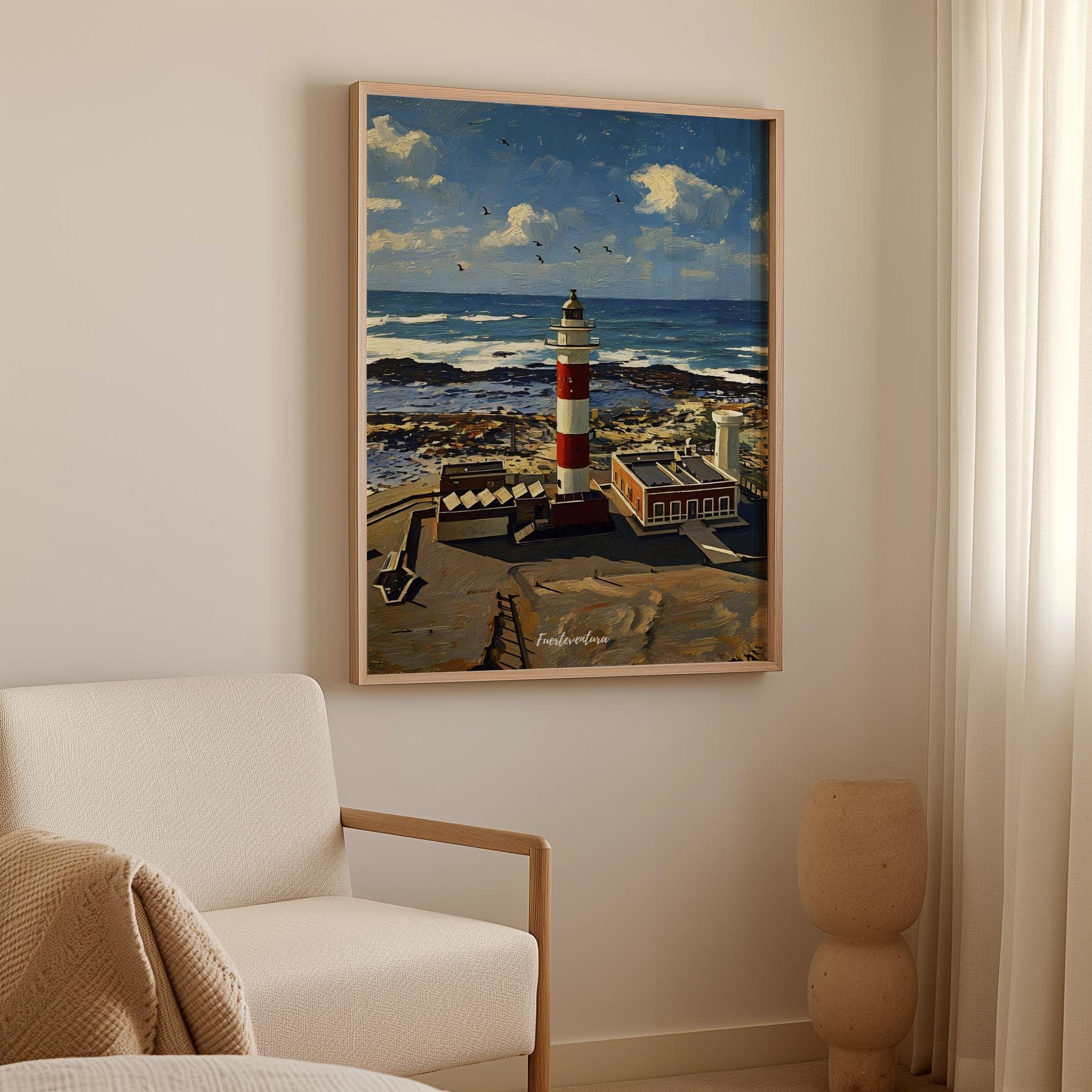 The open horizon, moving seabirds, and coastal textures bring a sense of freedom and depth, making it a strong decorative piece for interiors inspired by the sea and travel.