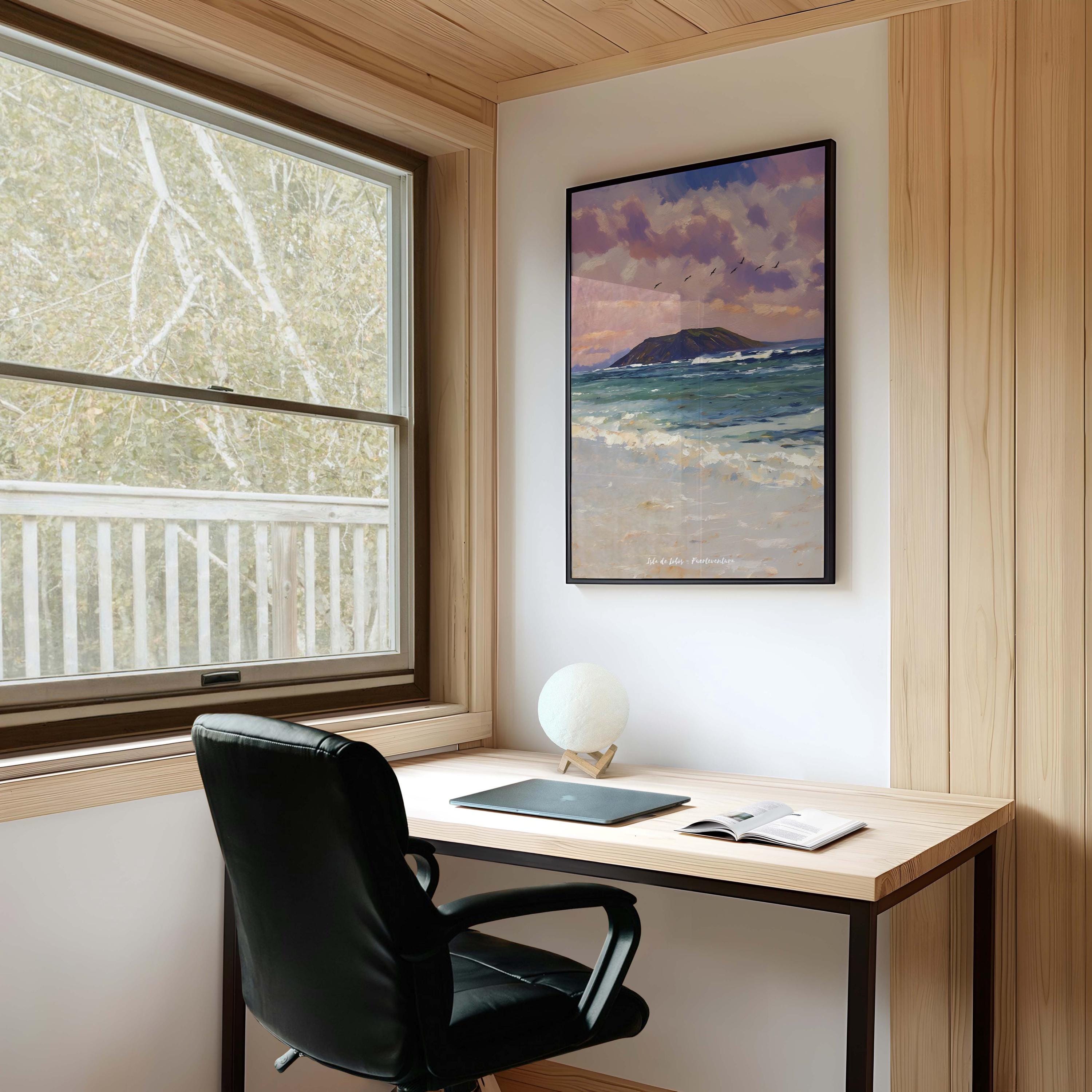 Printed on premium 100% cotton canvas, this piece adds warmth and serenity to any room—ideal for bedrooms, relaxed living spaces, or interiors inspired by coastal sunsets.