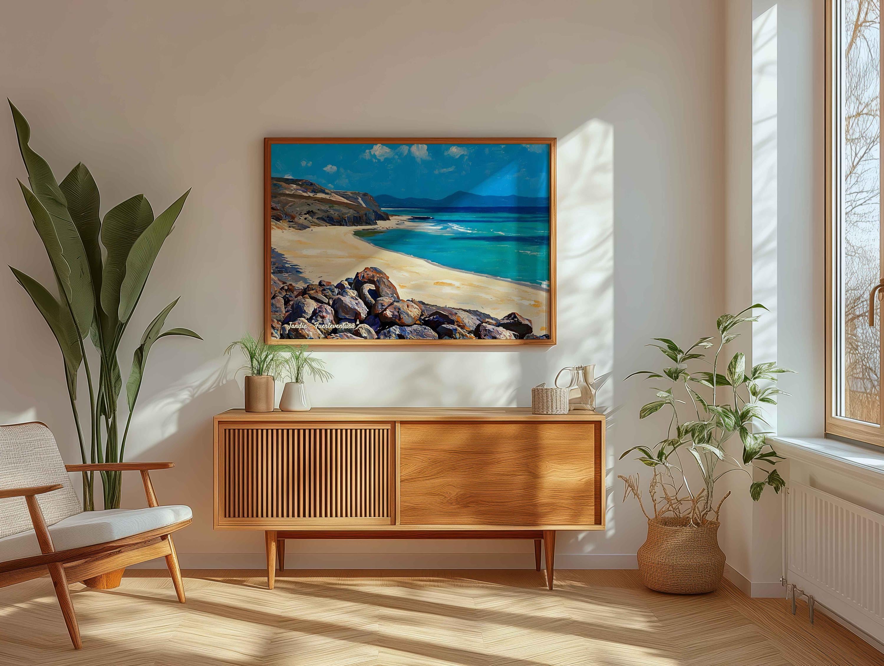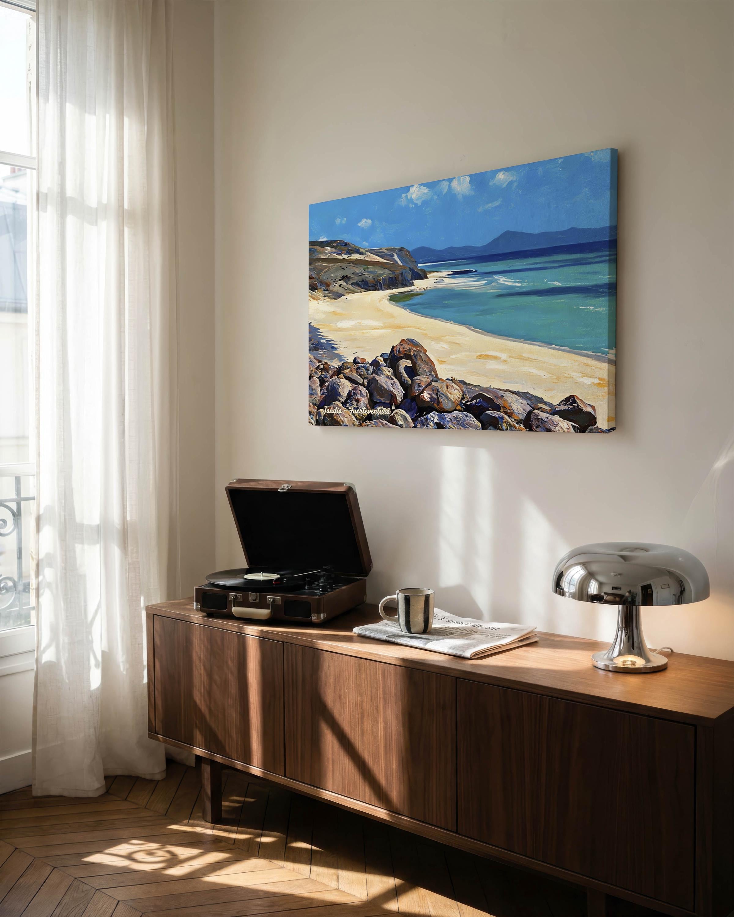 Jandía Coast, Fuerteventura – Turquoise Beach Canvas Print, Canary Islands Wall Art, Coastal Landscape Decor