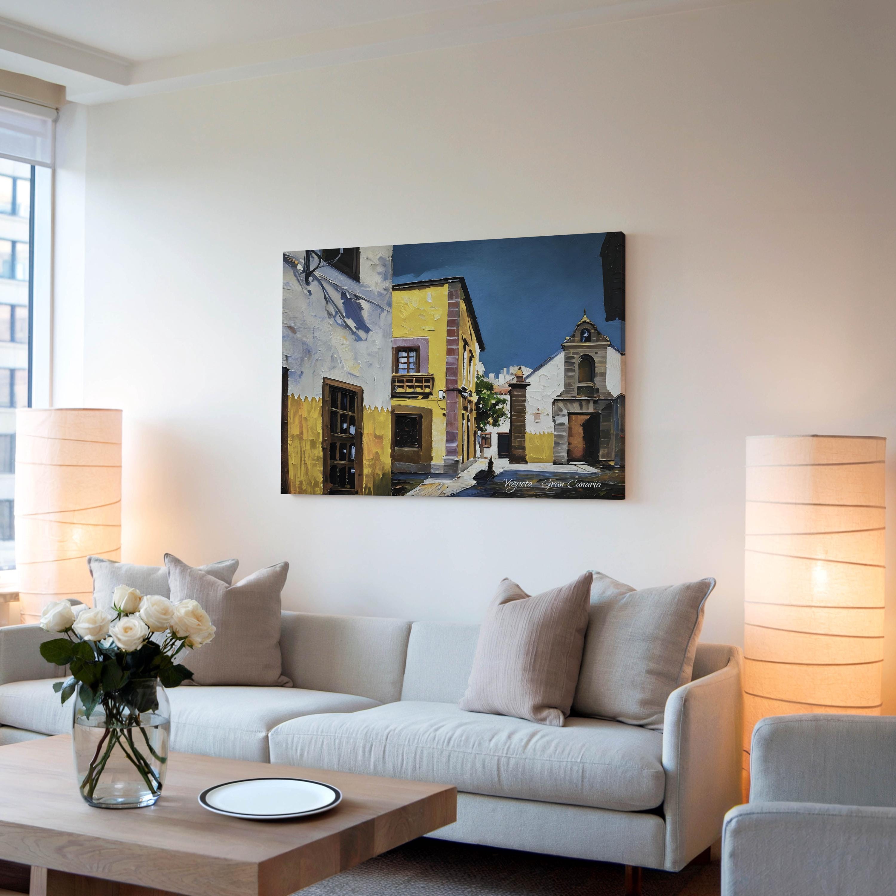 Printed on premium 100% cotton canvas, this piece brings the atmosphere of historic Gran Canaria into your home or office. The warm colors and timeless architecture create a calm and elegant wall decoration inspired by the cultural heritage of the Canary Islands.