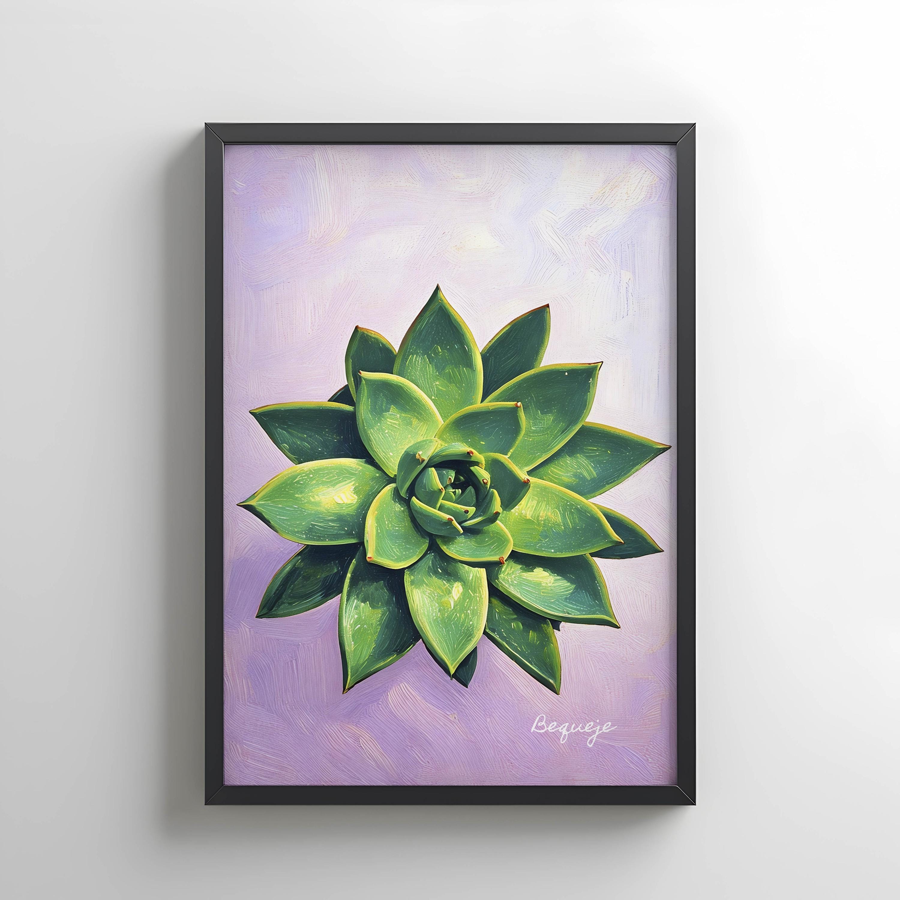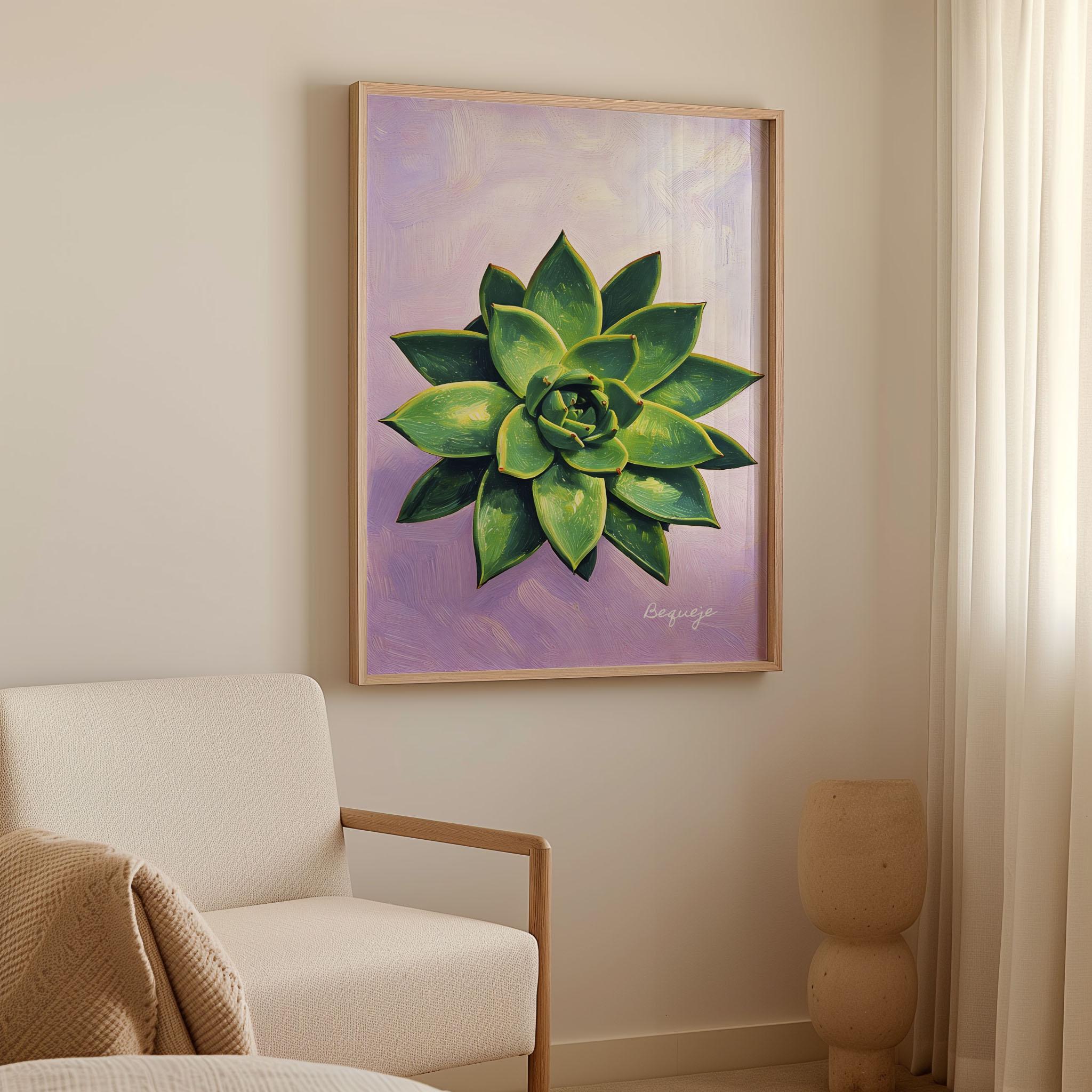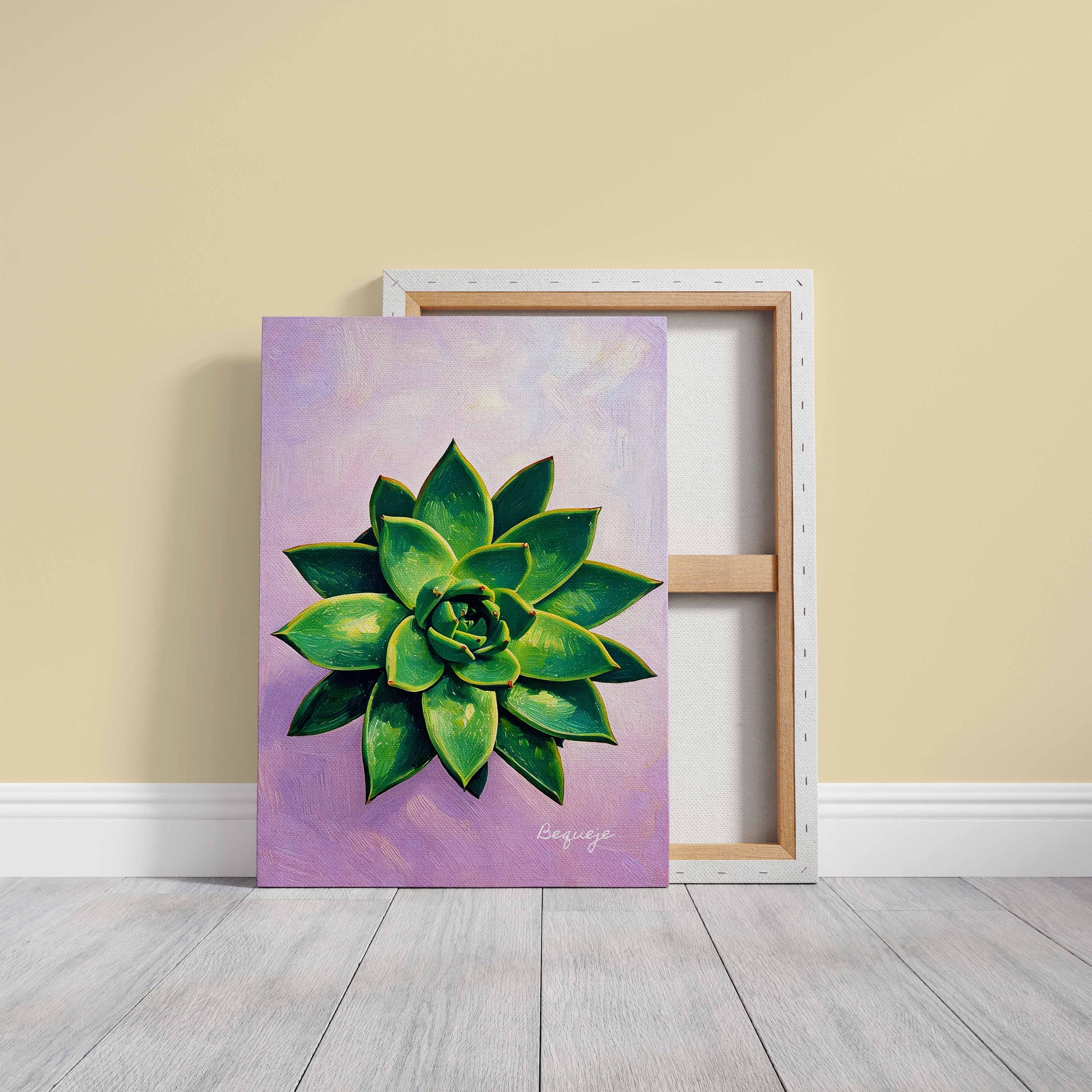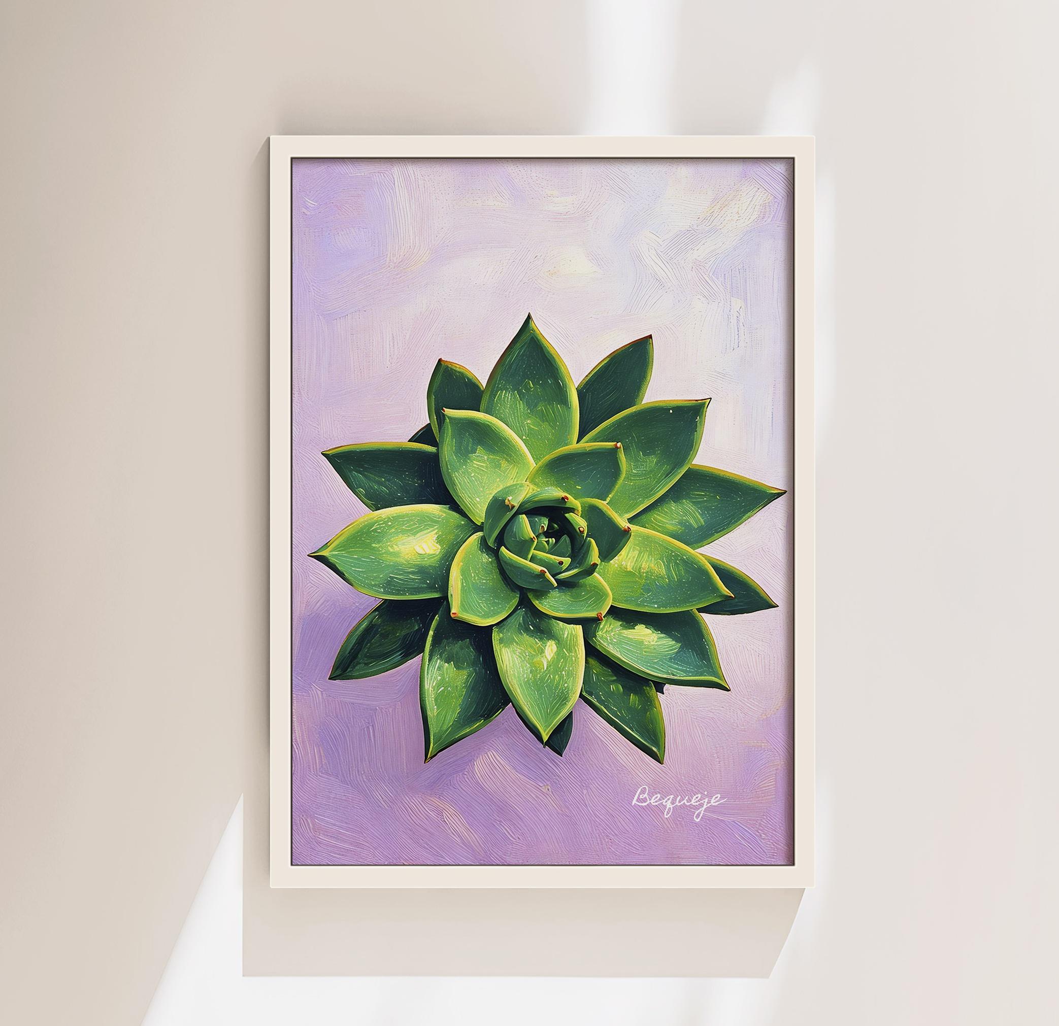 This artwork features the elegant geometric form of the Bejeque, a succulent plant native to the Canary Islands. Its symmetrical rosette of thick green leaves creates a natural pattern that highlights the plant’s distinctive structure and botanical beauty.