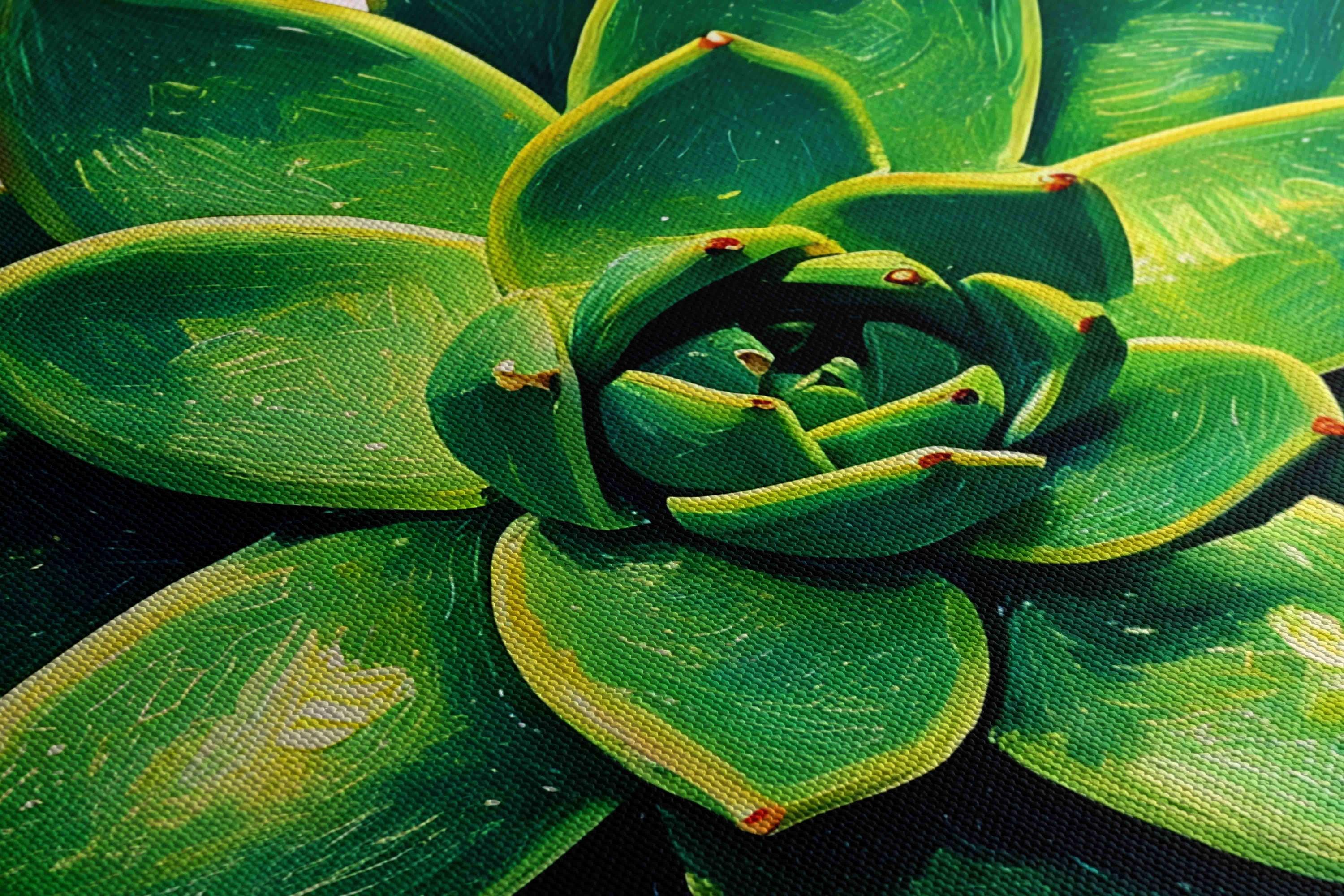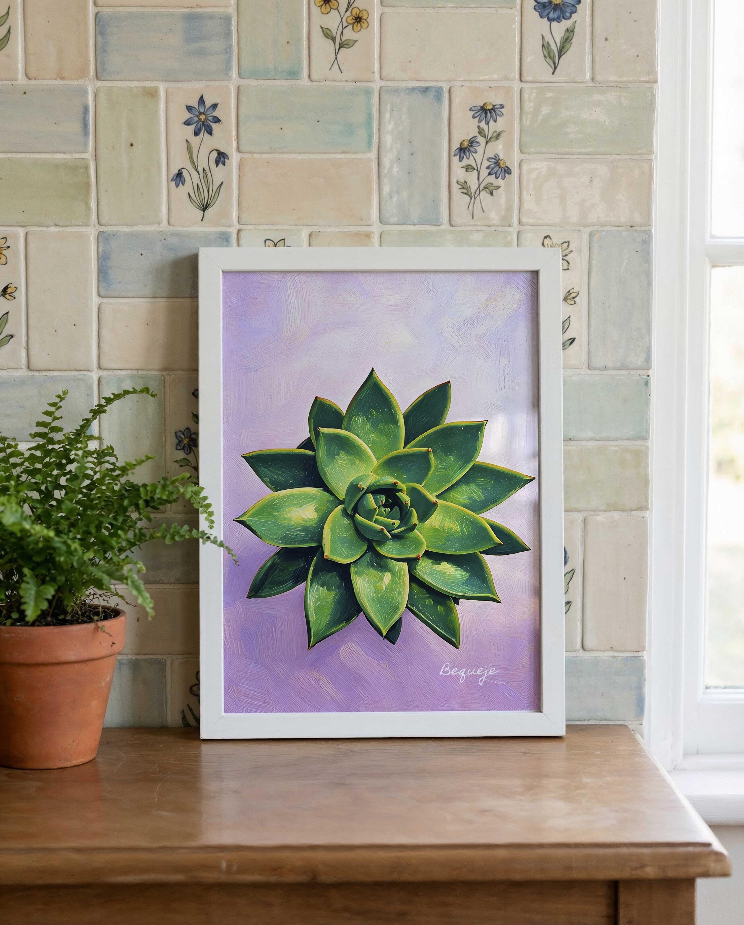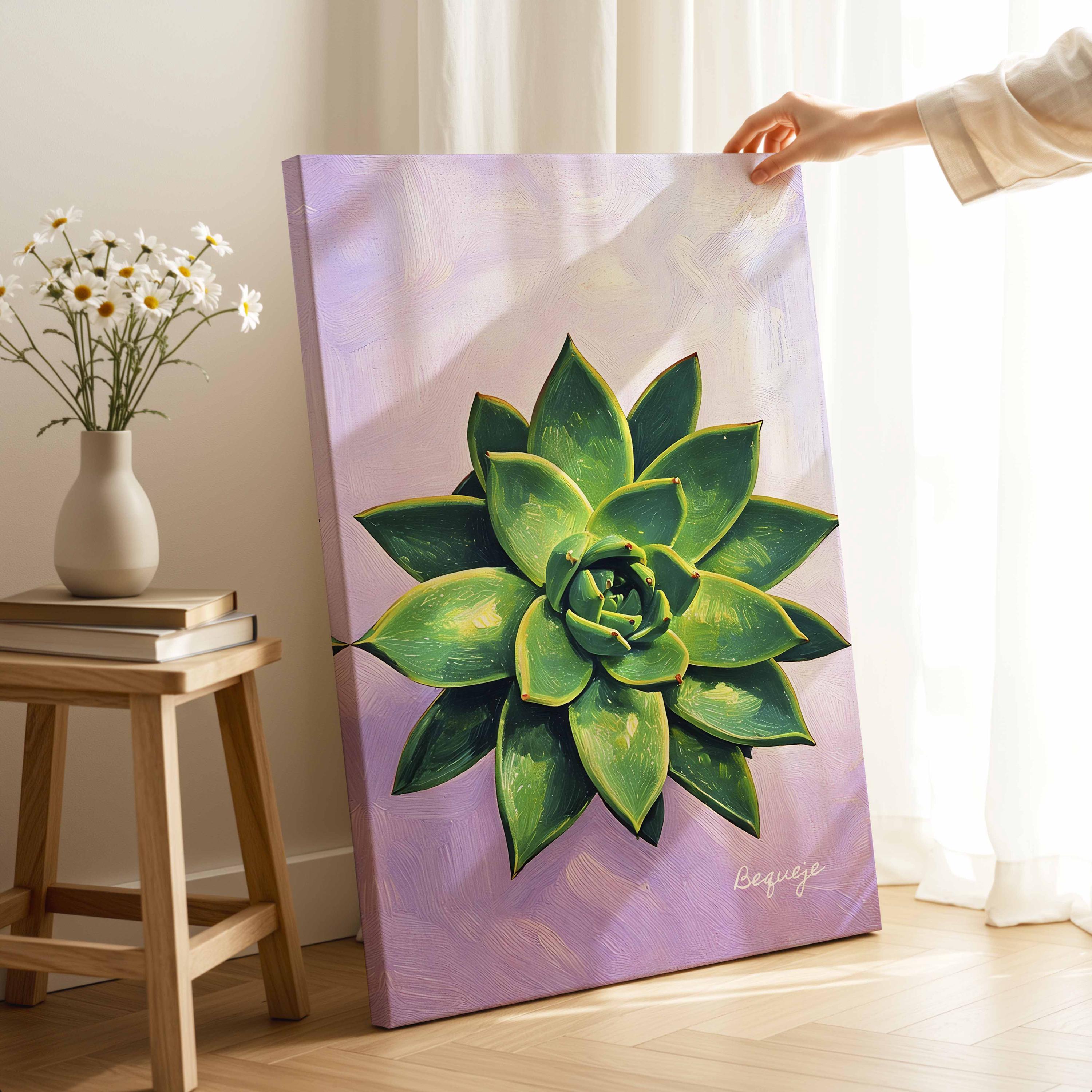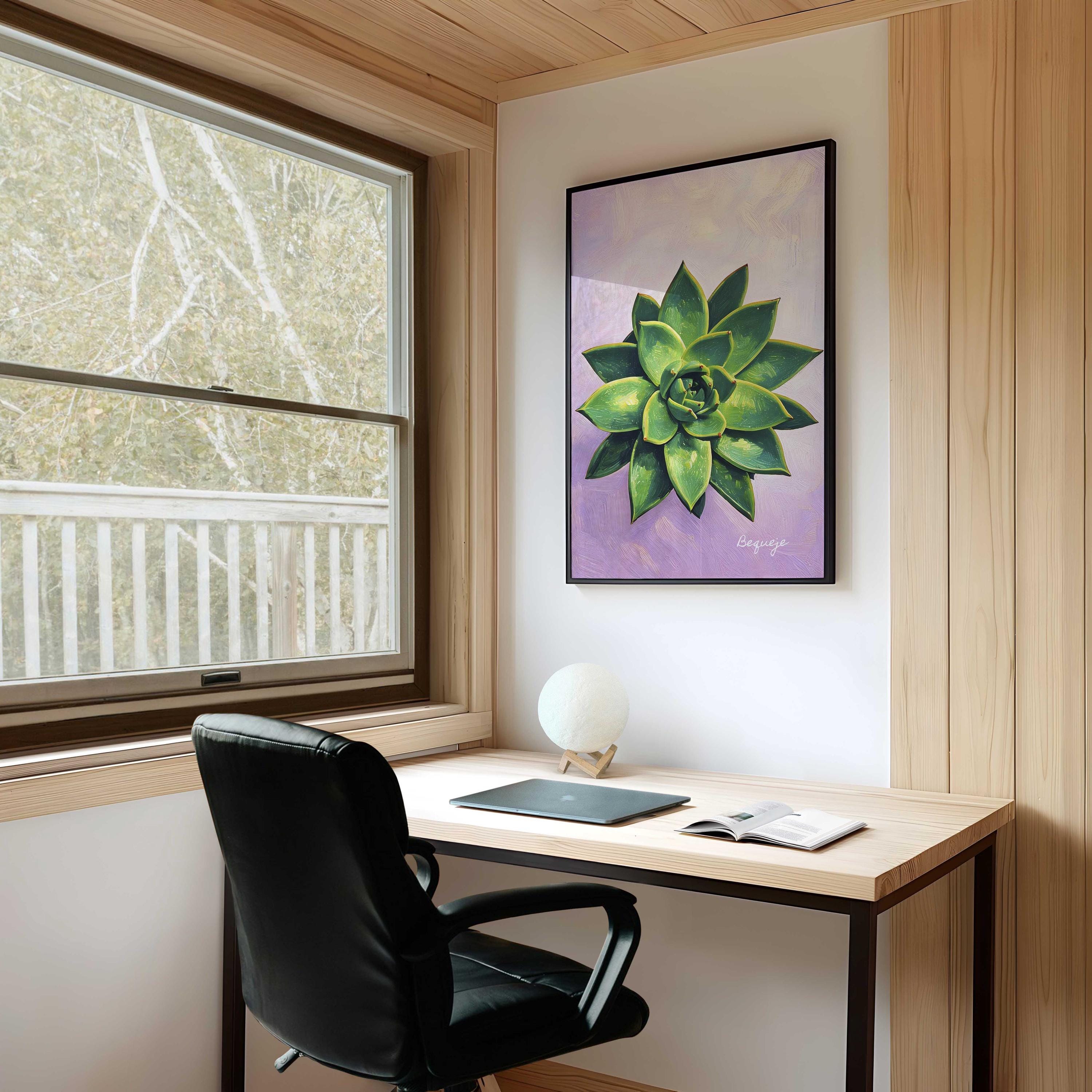 This artwork features the elegant geometric form of the Bejeque, a succulent plant native to the Canary Islands. Its symmetrical rosette of thick green leaves creates a natural pattern that highlights the plant’s distinctive structure and botanical beauty.