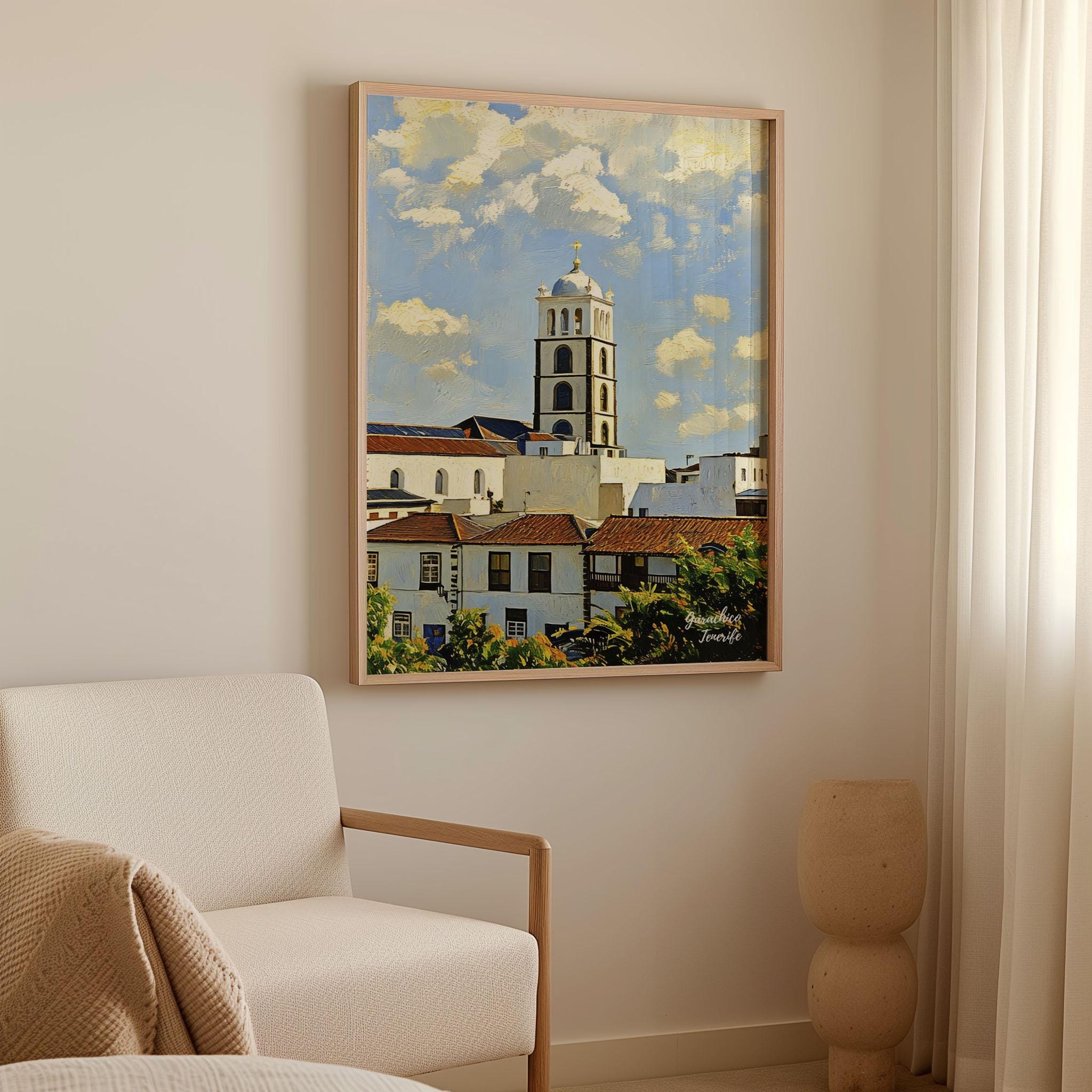 Printed on premium 100% cotton canvas, this artwork captures the charm of Garachico’s traditional architecture and the timeless atmosphere of this historic town. The scene reflects the cultural heritage and coastal character that make Garachico one of Tenerife’s most distinctive places.