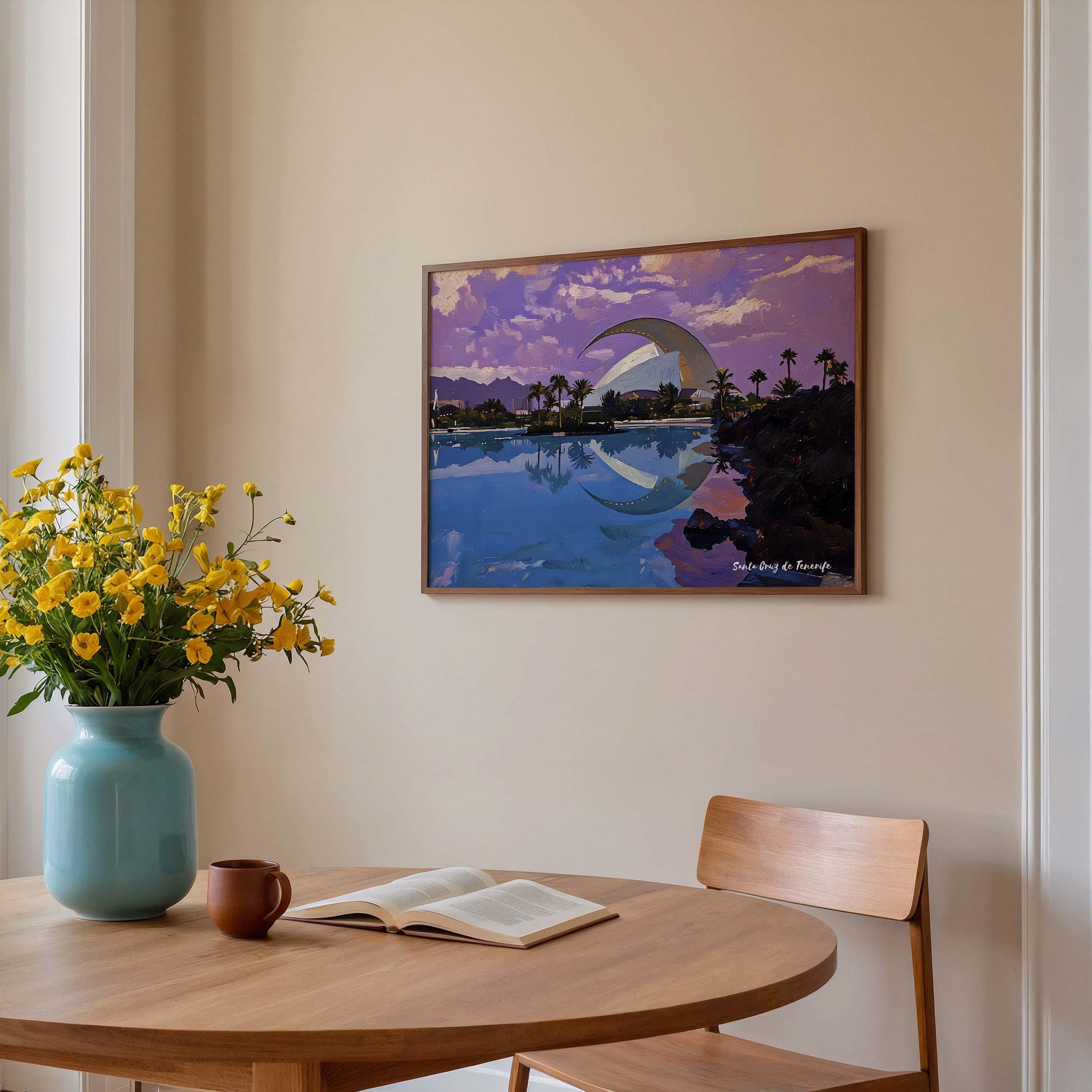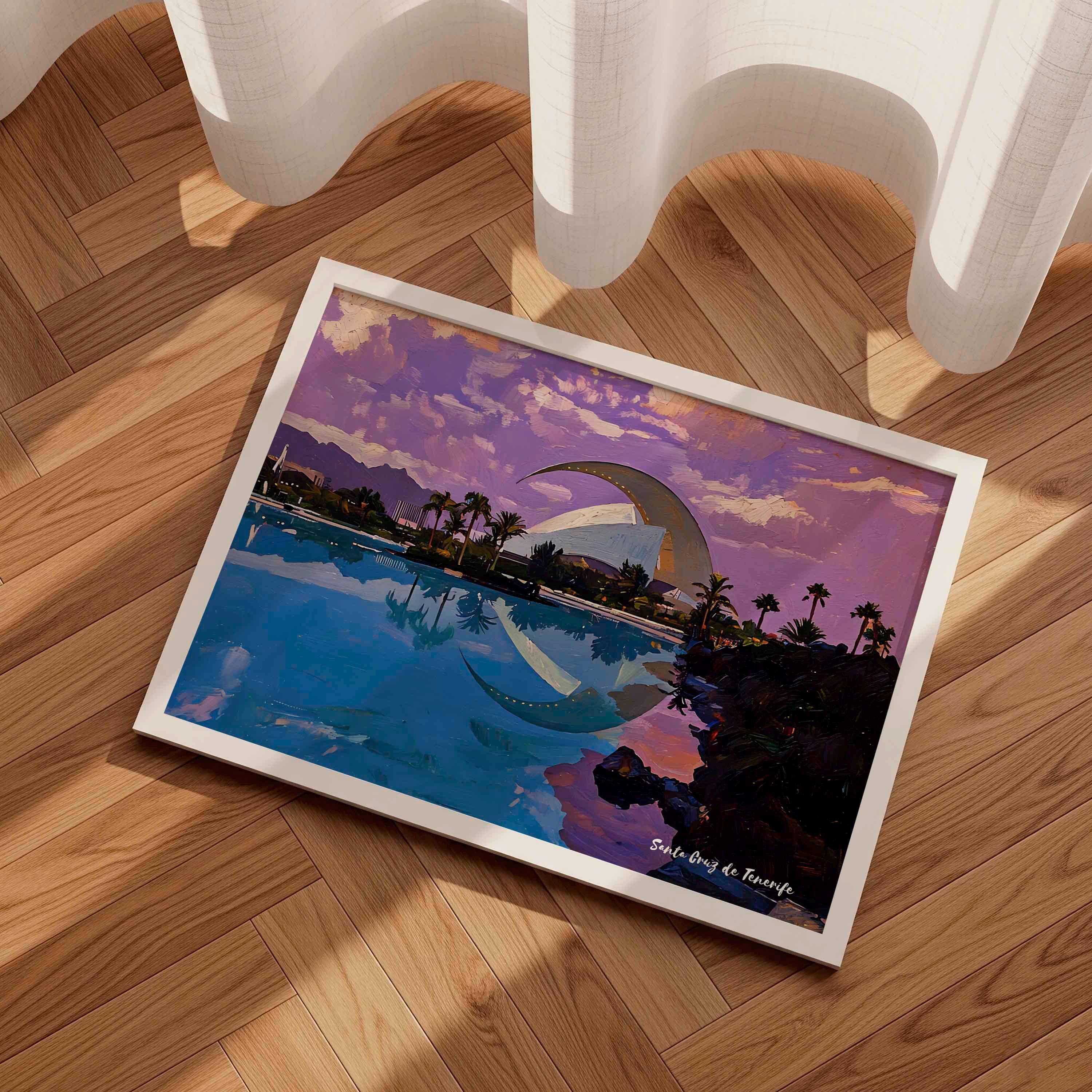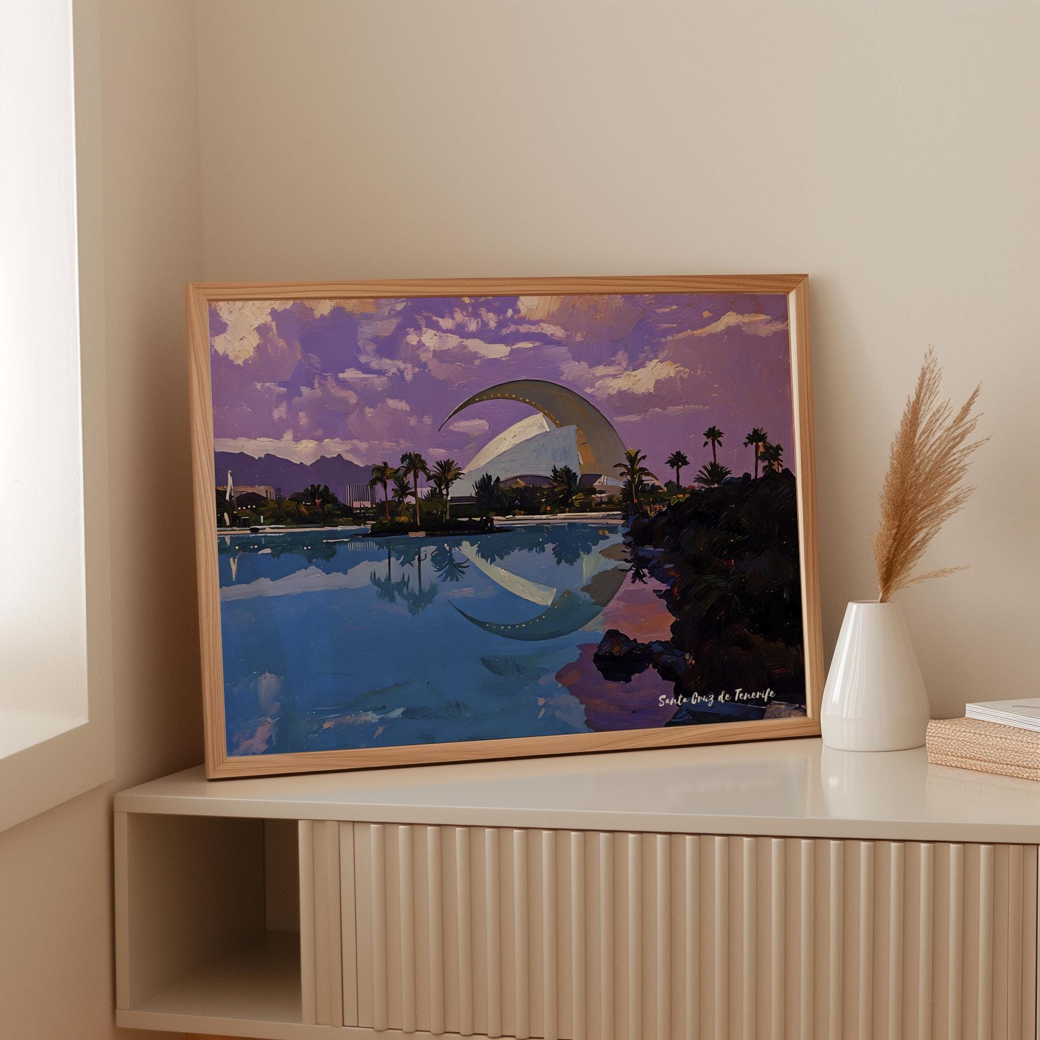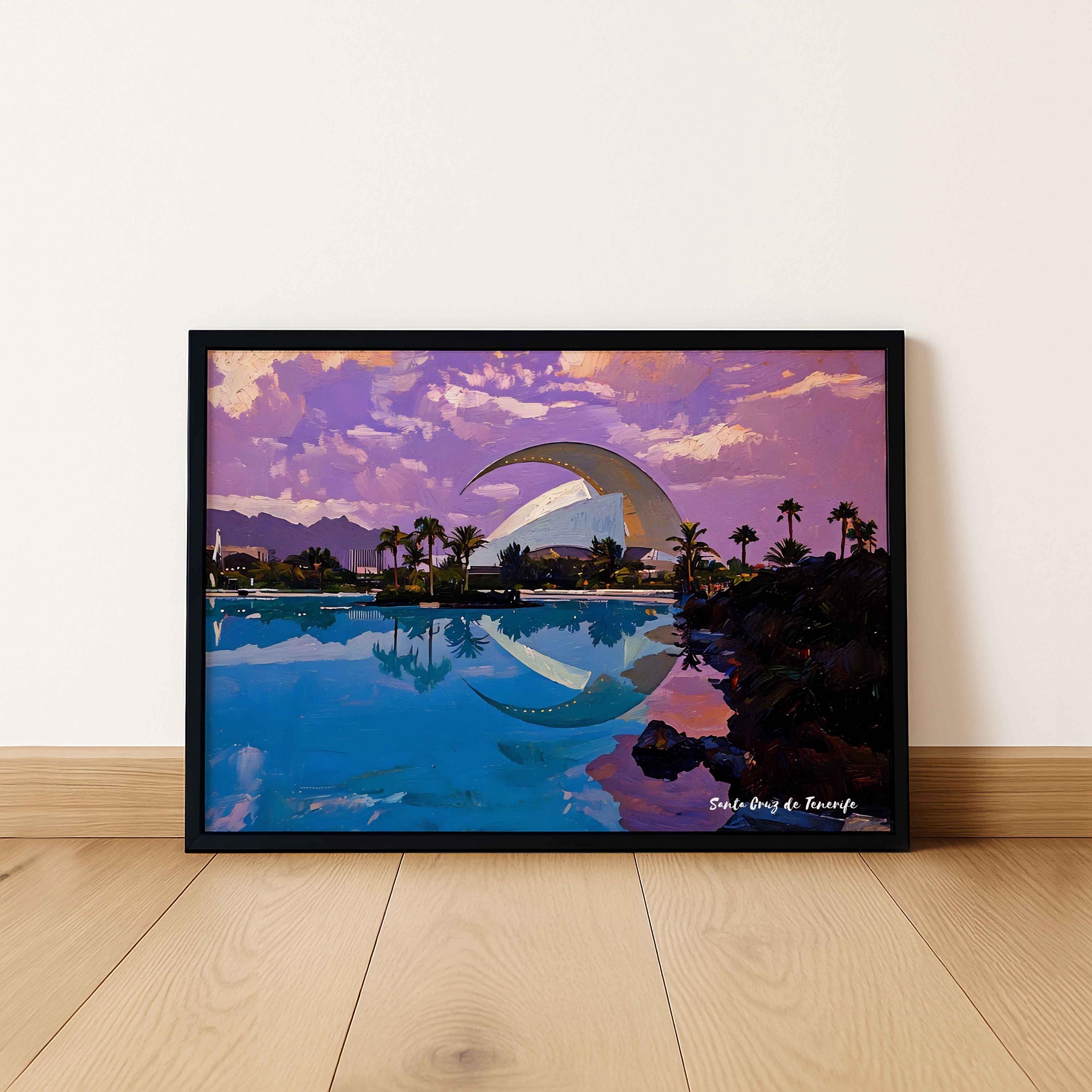Printed on premium 100% cotton canvas, this artwork reflects the balance between modern design and the coastal atmosphere of Tenerife. The composition highlights the unique character of Santa Cruz, where innovation and island landscape come together.