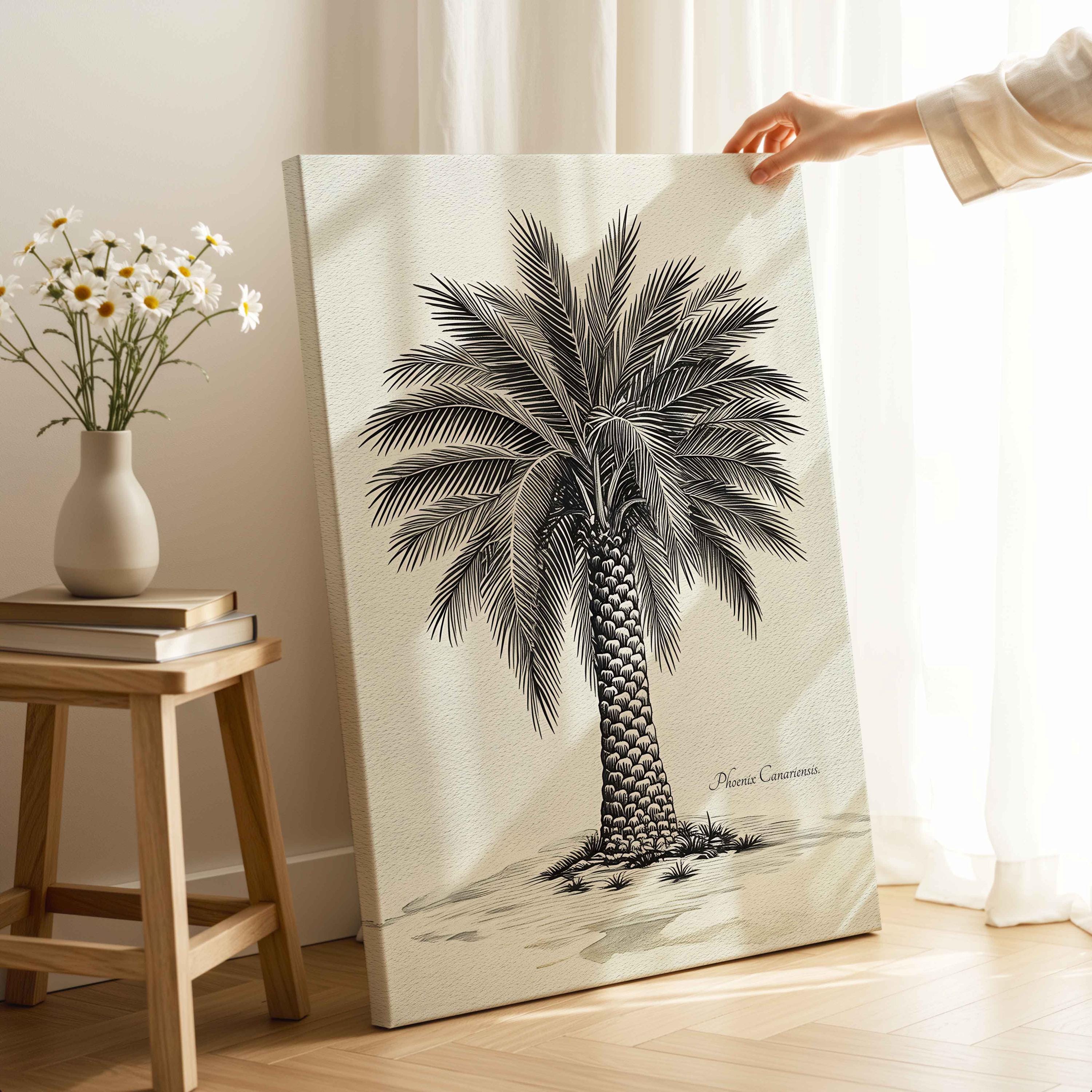 Printed on premium 100% cotton canvas, this botanical artwork reflects the elegance and cultural importance of this native species. The detailed illustration and classic style create a decorative piece inspired by the natural heritage of the Canary Islands.